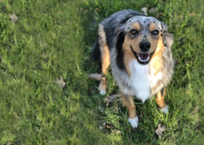 Oakley was our first mini Aussie and is a great mom. She loves to be with her people and is a cuddler. She loves to dig in the dirt, swim in the pond, and get in a good chase of cats or livestock (whichever is available).
